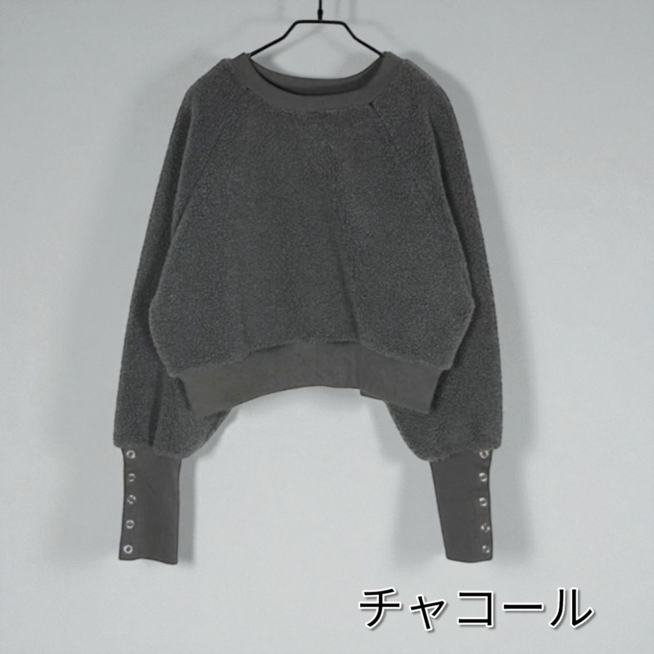シルバーボタンがポイントの長めに取ったリブ袖でメリハリをプラス。