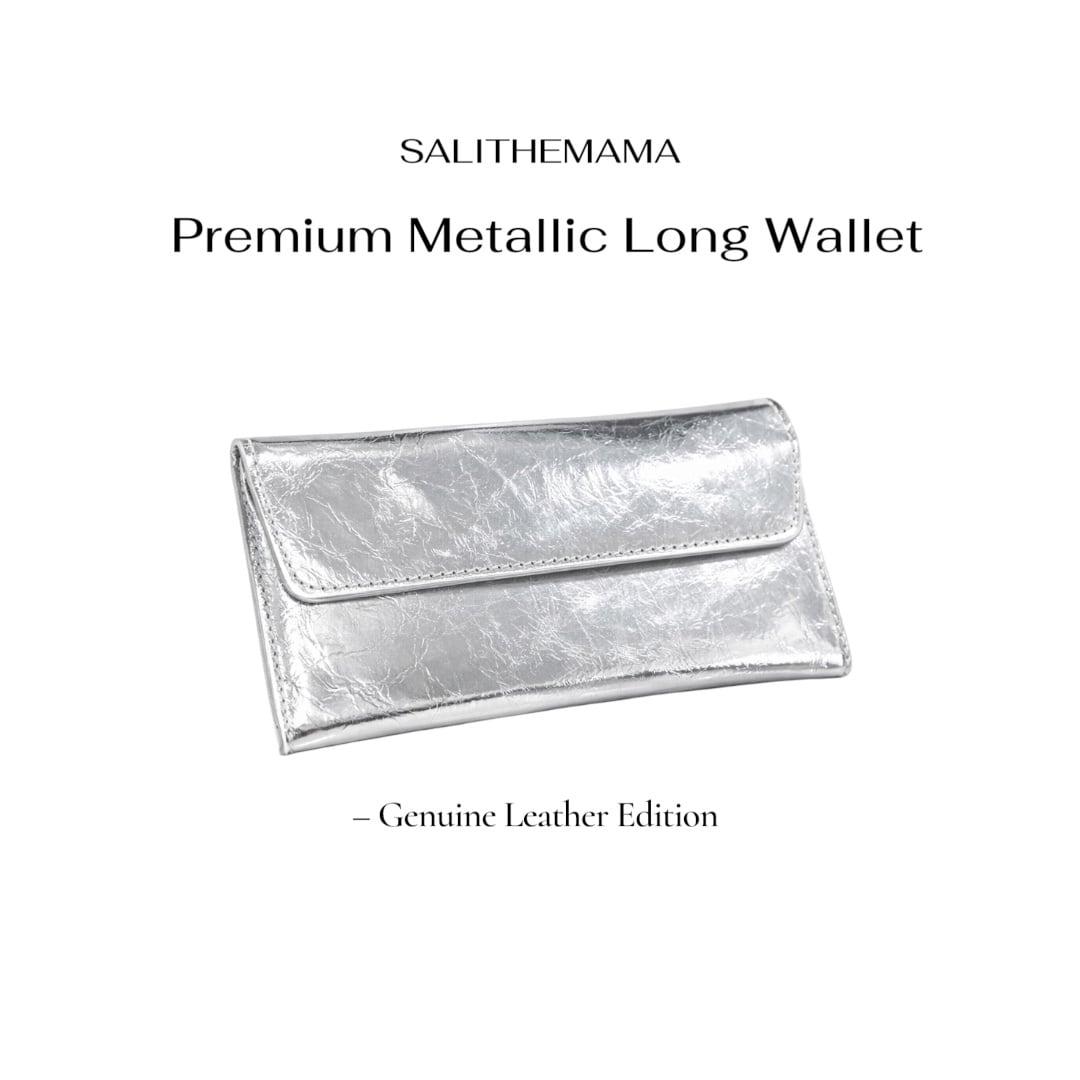 Premium Metallic Long Wallet — Genuine Leather —