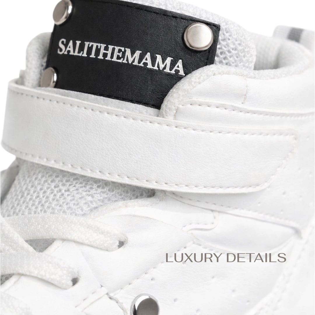 SALITHEMAMAのホワイトハイカットスニーカーは、